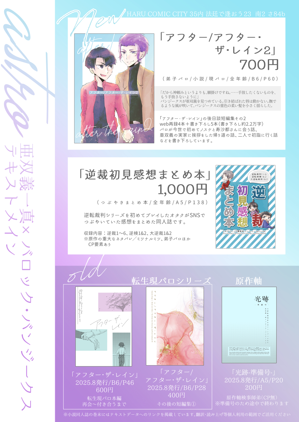 【3/20 HARU COMIC CITY 35内 法廷で逢おう 23 お品書き】